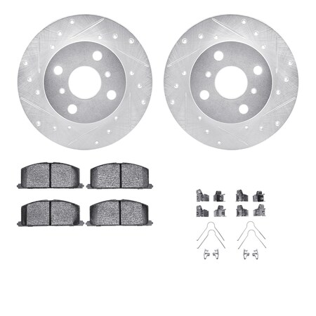 Dynamic Friction Company Front Brake Rotors-Drilled and Slotted-Silver with 5000 Advanced Brake Pads includes Hardware 7512-76200