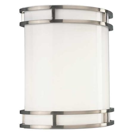 You do not need to sacrifice style to save energy, this fixture provides both. Classically modern, this sconce is perfectly suited for both residential and commercial applications. The sleek, curved glass fixture is neatly nested within metal architectural fittings. You will appreciate how the simple, clean lines and understated fashion work with your decor. Details: Brushed nickel finish White acrylic diffuser 9-3/8 in. W x 10-5/8 in. H Uses (1) 26-Watt 4-pin, quad compact fluorescent bulb (not included) Energy efficient Simple, clean lines Understated style Mounting Deck Height (in.) - 0.39 Mounting Deck Width (in.) - 4.88 Product Depth (in.) - 3.88 Product Height (in.) - 10.63 Product Width (in.) - 9.38 Connection Type - Hardwired Fixture Color/Finish - Brushed Nickel Fixture Color/Finish Family - Nickel Fixture Material - Steel Light Direction - Down,Up Mounting Deck Shape - Rectangle Product Weight (lb.) - 5.17 lb