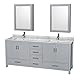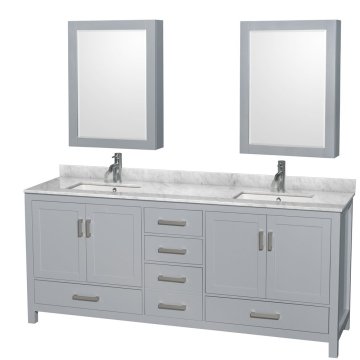 Wyndham Collection Sheffield 80 inch Double Bathroom Vanity in Gray, White Carrara Marble Countertop, Undermount Square Sinks, and Medicine Cabinets