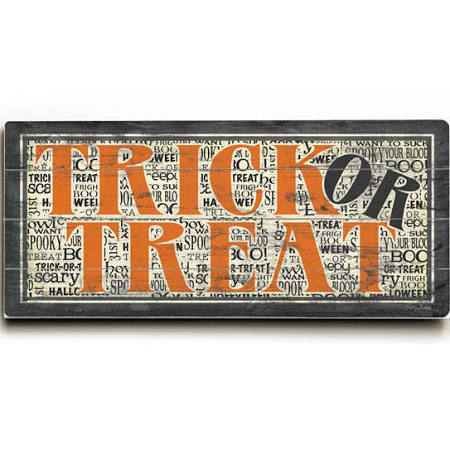 <p>Add an element of fun to your walls by decorating them with these wall decor and decals. Portraying fancy prints, our products will be a big hit amongst everyone. Pick your favorite one and transform a regular wall into a work of art. Make your room an elegant look with these wonderful wall decor products and will the best fit for all type of space.</p> <b>Features</b> <ul> <li>Unique vintage design</li> <li>Ready to hang</li> </ul> <b>Specifications</b> <ul> <li><b>Material: </b>Wood</li> <li><b>Configuration: </b>Planked</li> <li><b>Design: </b>Trick or Treat</li> <li><b>Artist: </b>Misty Diller</li> <li><b>Size: </b>10" x 24"</li> <li><b>Weight: </b>2</li> </ul>- SKU: ONBLC3225