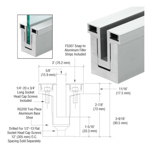 CRL Blumcraft RG200SAPK RG200 Series Satin Anodized Two Piece Base Shoe - 6" Sample