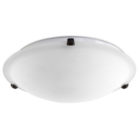 Quorum 3000-16186 16 Inch Three Light Flush Mount, Oiled Bronze Finish with Satin Opal Glass