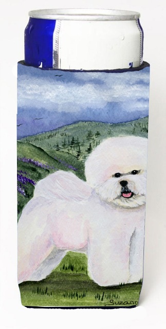 Caroline's Treasures SS8025MUK Bichon Frise Ultra Hugger for slim cans Can Cooler Sleeve Hugger Machine Washable Drink Sleeve Hugger Collapsible Insulator Beverage Insulated Holder