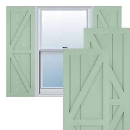 Ekena Millwork TFP102FH18X080SG True Fit PVC Two Equal Panel Farmhouse Fixed Mount Shutters w/Z-Bar, (Per Pair-Hardware Not Included), 18"W x 80"H, Seaglass