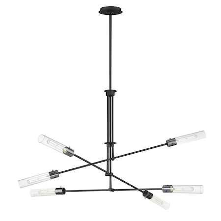 This 6 light Multi-Light Pendant from the Equilibrium collection by Maxim will enhance your home with a perfect mix of form and function. The features include a Black finish applied by experts. Product Features Include: Brand: Maxim Lighting, Collection: Equilibrium, SKU: 26376CLBK, UPC: 783209281240, Category: Pendant, Finish: Black, Glass: Clear, Material: Steel/Glass, Length: 51.75 in., Width: 51.75 in., Height: 33.00 in., Max Height: 76.25 in., Backplate/Canopy Width: 5.00 in., Backplate/Canopy Length: 5.00 in., Backplate/Canopy Thickness: 0.75 in., Weight: 13.90 lb., Included Lead Wire: 120, Bulbs Included: Yes, Bulb Category: LED, Primary Bulb(s): 6 x 6.00 watts E26 Medium, Color Temperature: 2700K, Color Rendering Index: 90.0000, Total Lumens: 3600, Voltage: 120, Safety Rating: cETLus Dry