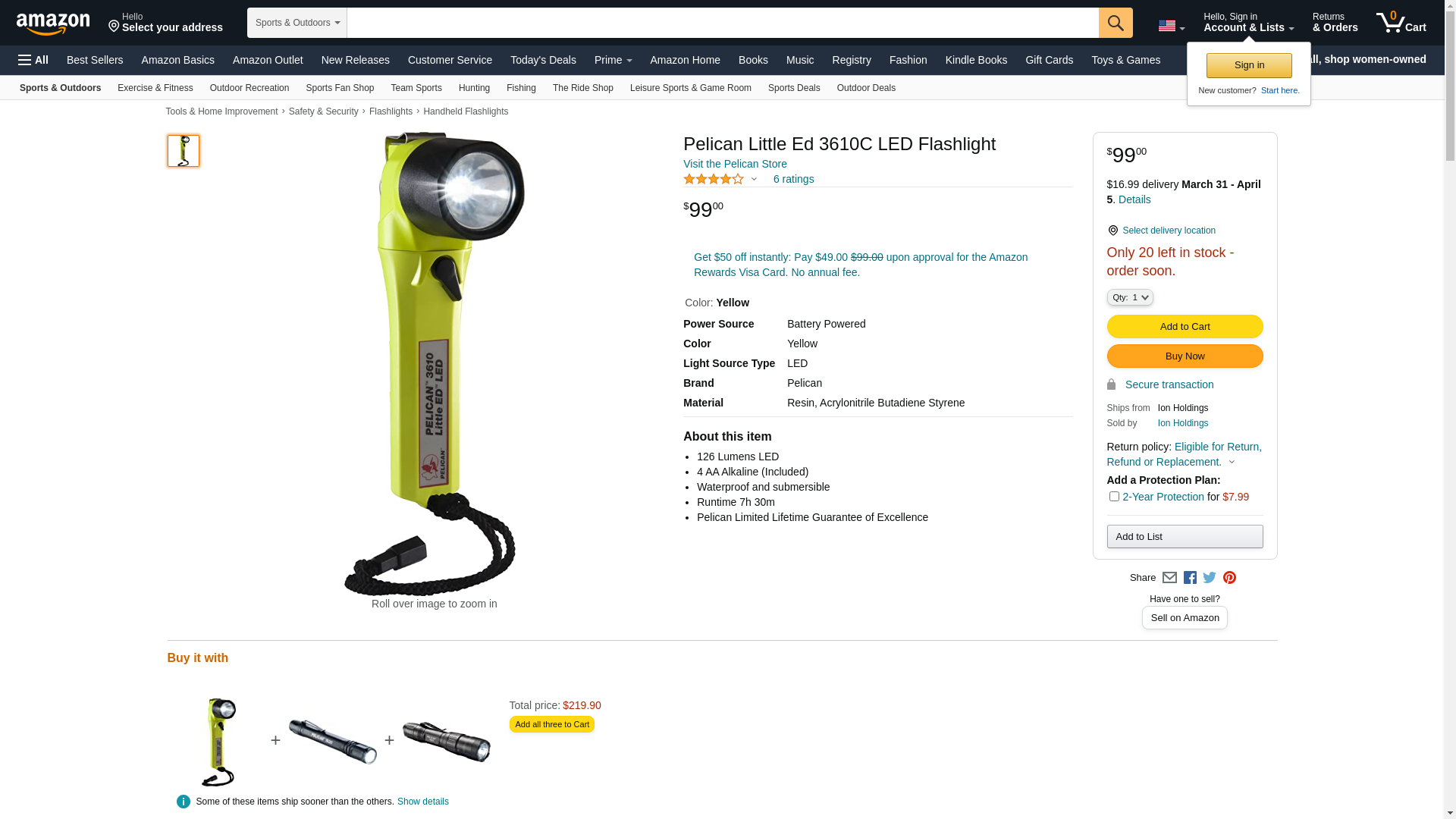 Pelican Little Ed 3610 Flashlight (Yellow)