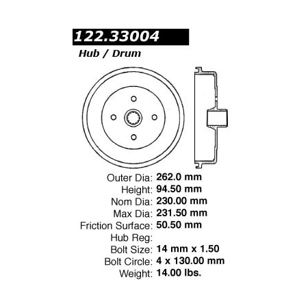 Centric Premium Brake Drum 122.33004 | 122.33004