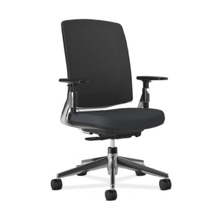 HON Lota Series Mesh Mid-Back Work Chair, Supports up to 250 lbs., Black Seat/Black Back, Polished Aluminum Base (2283VA10PA)
