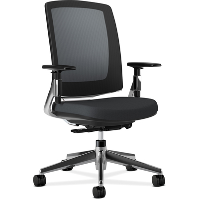HON Lota Series Mesh Mid-Back Work Chair, Black Fabric, Polished Aluminum Base