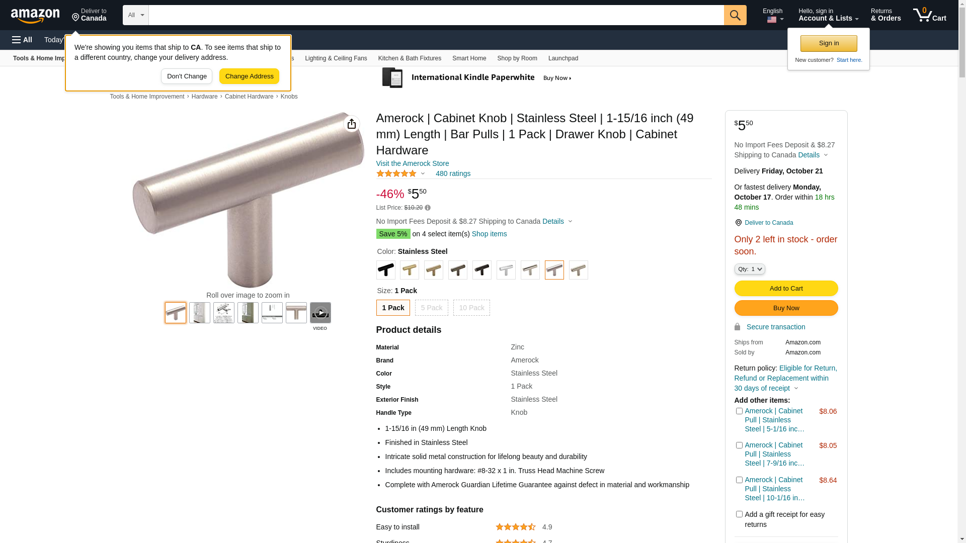 - Amerock Stainless Steel Knob