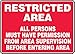 Accuform MADM920VS Adhesive Vinyl Sign, Legend "Restricted Area All Persons Must Have Permission from Area Supervision", 7" Length x 10" Width x 0.004" Thickness, White on Red