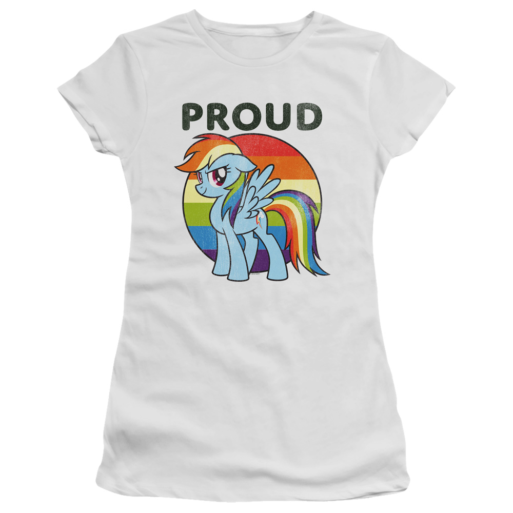 Trevco HBRO288-JS-2 My Little Pony TV & Proud-Short Sleeve Juniors Sheer T-Shirt, White - Medium