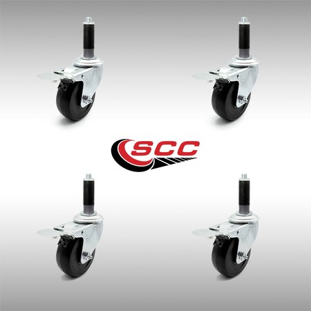 4 Inch SS Hard Rubber 7/8 Inch Expanding Stem Caster Set Total Lock Brake