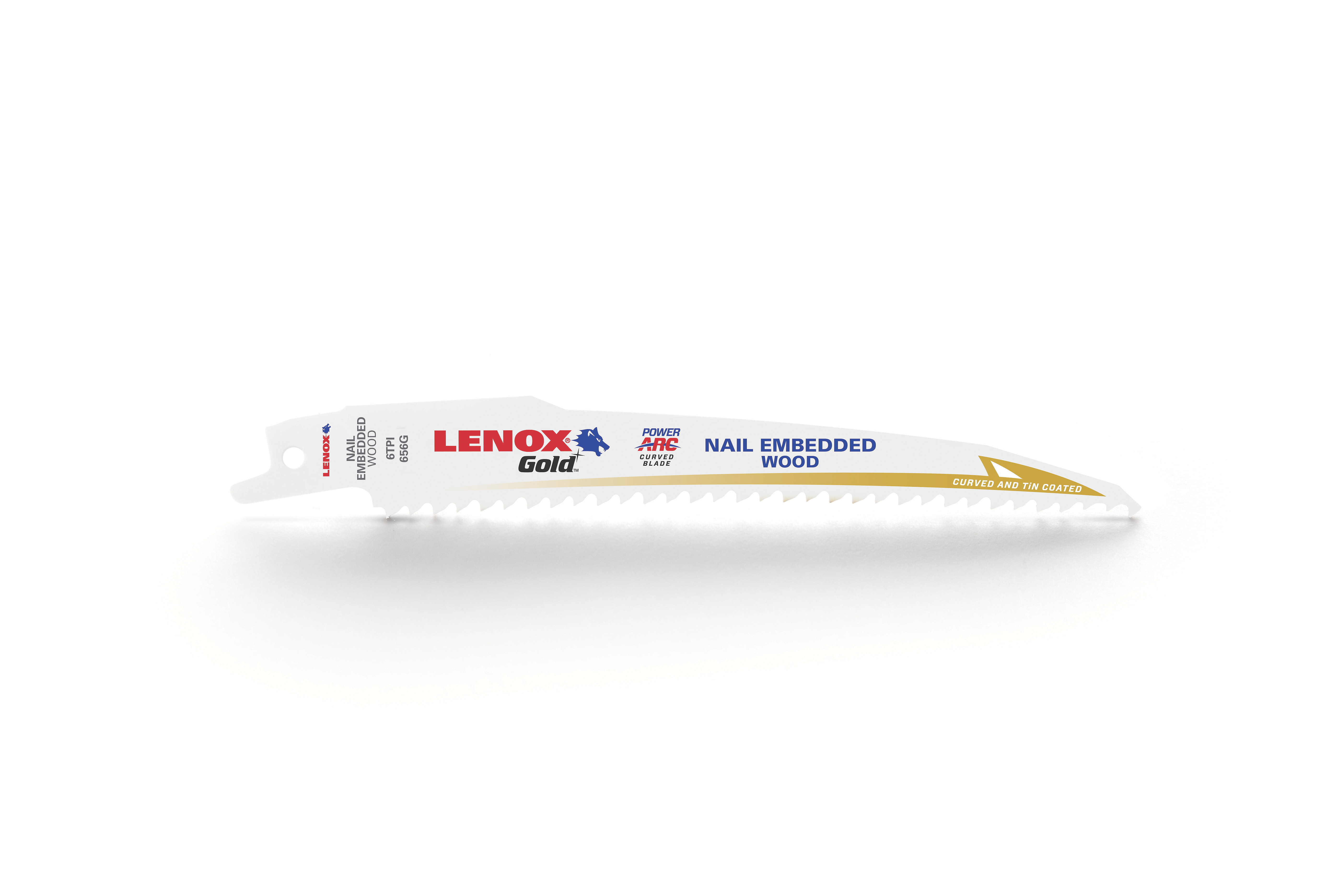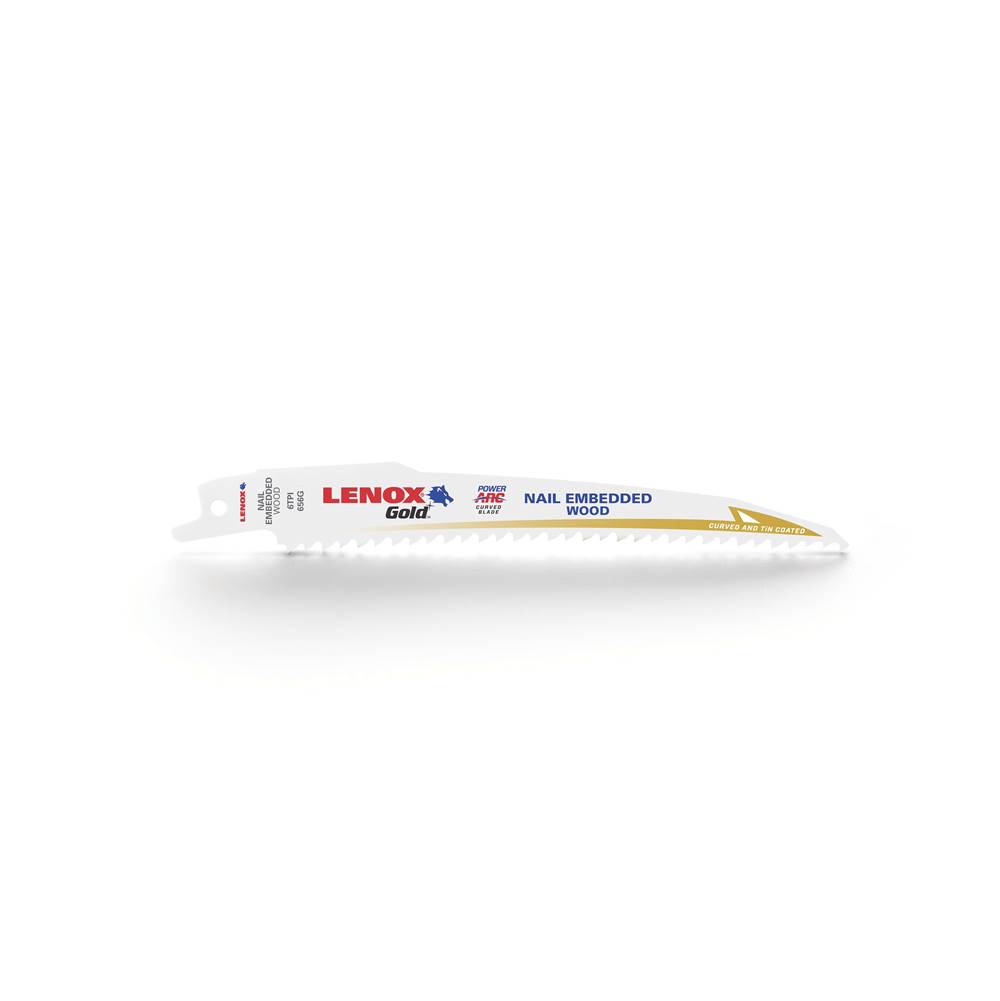 LENOX Tools 21060656GR Gold Power Arc Reciprocating Saw Blade, For Wood, Nail-Embedded Wood Cutting, 6-inch, 6 TPI, 5-Pack