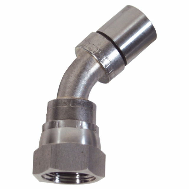 Dixon FJS45-03-03 304SS PTFE Hose FTG, 1-Crimp Collar, 45 Degree FJIC x Dash-3, 3/16"