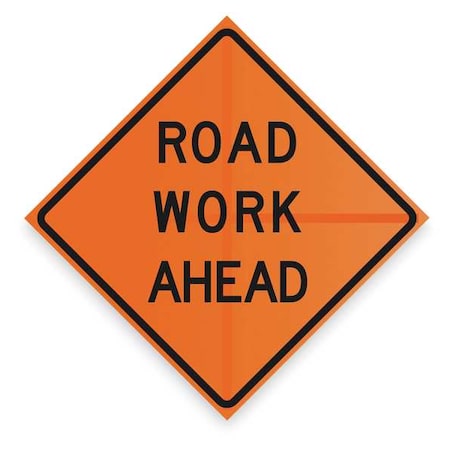 Work Ahead Sign, 48 x 48In, BK/ORN, Text
