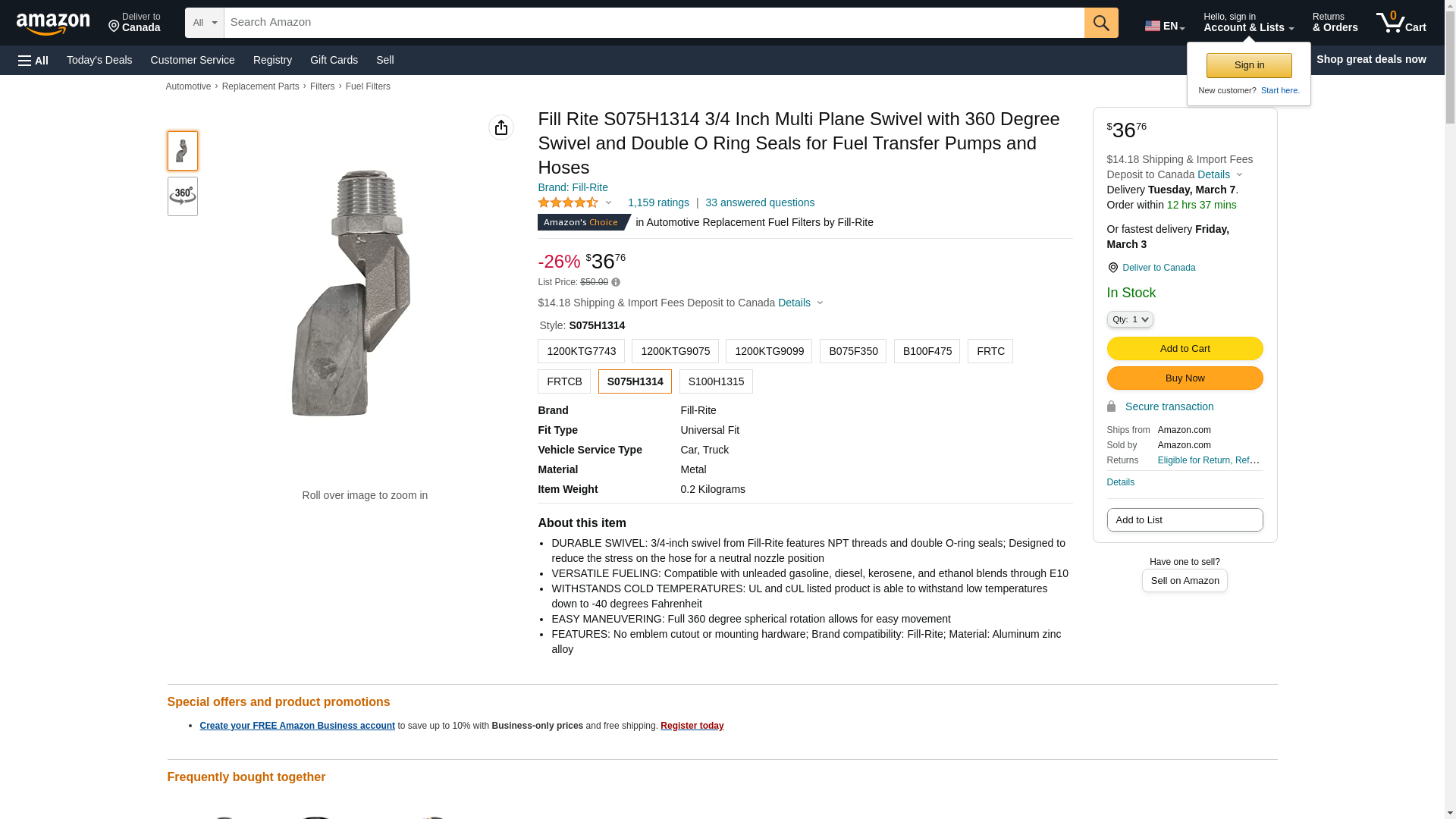 Fill-Rite S075H1314 3/4" Multi-Plane Swivel