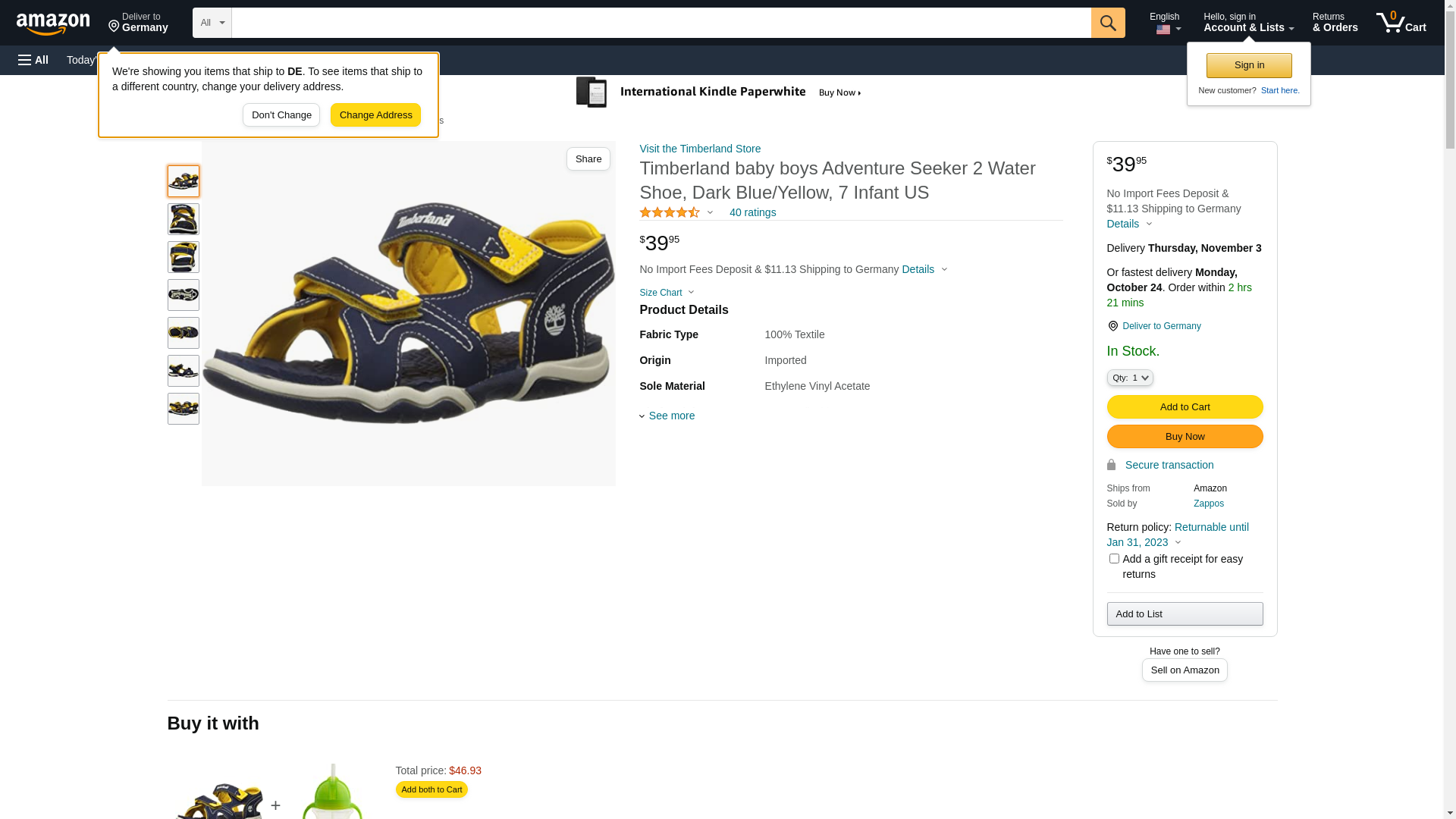 Infant Timberland Adventure Seeker 2-Strap Sandal Toddler<p>Country of Origin: China