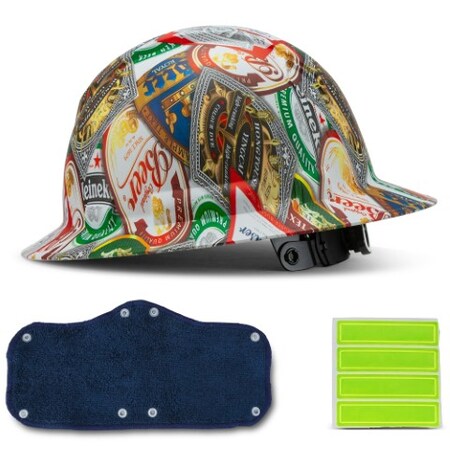 - CRACK OPEN A COLD ONE - Unique Happy Hour Modern Design. Finally, a Full Brim Hydro Dipped hard hat that meets your safety and fashion requirements, Working hard has never looked so good!
