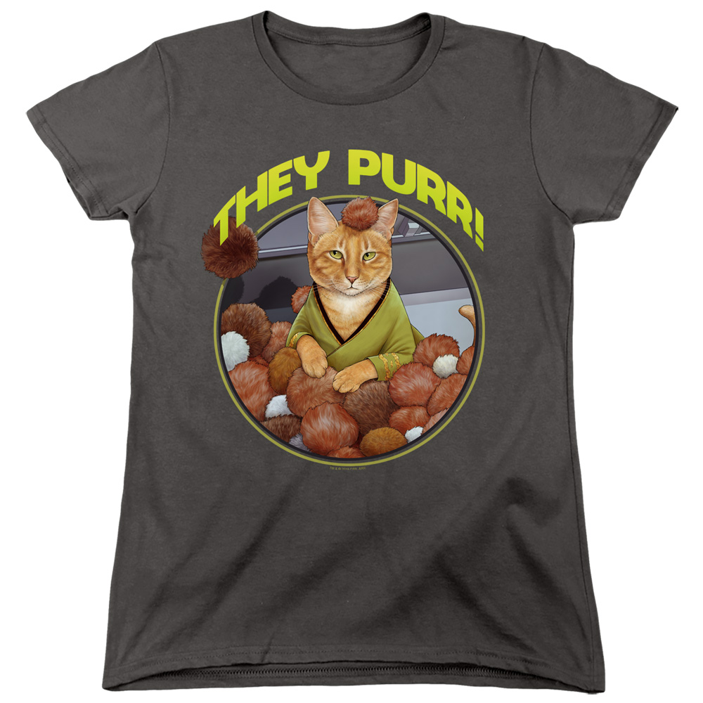 Trevco CBS2551-WT-2 Star Trek & The Purr Womens Short Sleeve T-Shirt, Charcoal - Medium