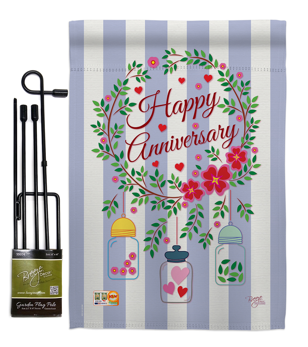 Breeze Decor BD-FY-GS-115103-IP-BO-D-US15-BD 13 x 18.5 in. Happy Anniversary Special Occasion Family Impressions Decorative Vertical Double Sided Garden Flag Set with Banner Pole