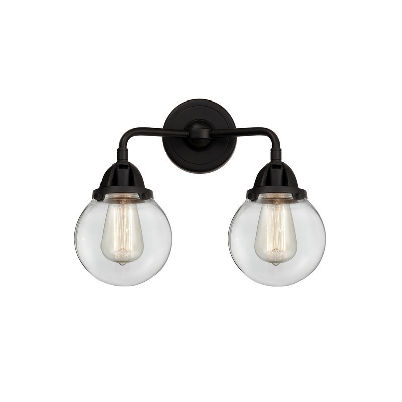 INNOVATIONS LIGHTING 288-2W-BK-G202-6-LED BEACON NOUVEAU 2 14 INCH 2 LIGHT WALL MOUNT BATH VANITY LIGHT, MATTE BLACK,...