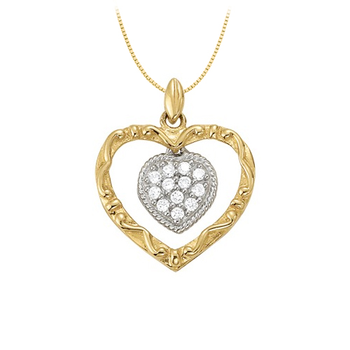 Fine Jewelry Vault UBNPD31940TT14D Two Tone Double Heart Pendant with April Birthstone Diamond in Gold 0.15 CT TDW