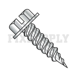 Self-Piercing Sheet Metal Screw - Slotted Drive Indented Hex Washer Head - 18-8 Stainless Steel - 8-15 Thread - 1" Long - Needle Point