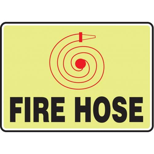 Accuform, MLFX544GF, 10" x 14" Glow Fire Safety Sign "Fire Hose" Lumi-Glow Flex Features: Flexible, 10-mil photoluminescent vinyl Permanent acrylic, adhesive-coated back with peel-off liner Resists abrasions, moisture, various chemicals, and UV light Service temperature range: -30 to 175 F