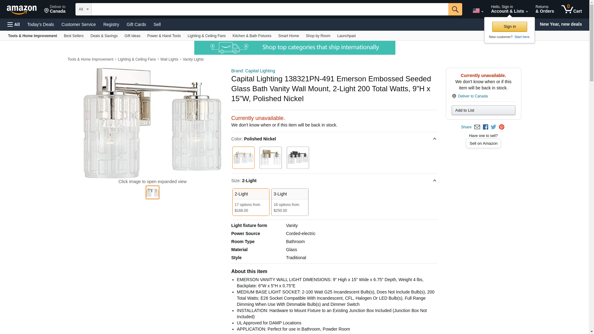 Capital 138321PN-491 Vanity, 2-Light 200 Total Watts, Polished Nickel