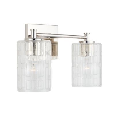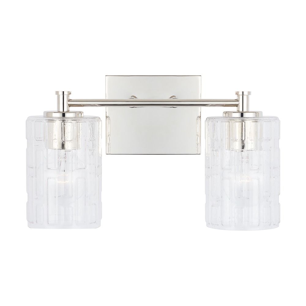 Capital Lighting 138321PN-491 Emerson Embossed Seeded Glass Bath Vanity Wall Mount, 2-Light 200 Total Watts, 9" H x 15" W, Polished Nickel