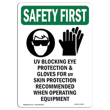 OSHA SAFETY FIRST Sign, UV Blocking Eye Protection W/ Symbol, 10in X 7in Decal