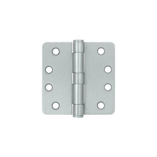 Highlights: Finish : Satin Chrome Size : 4" x 4" x 1/4" Full mortise hinge with heavy duty Radius corners Reliable value choice for indoor applications Steel construction
