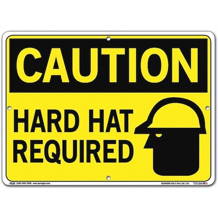 Vestil SI-C-04-C-AC-130 HARD HAT REQUIRED Caution Sign, Aluminum Composite, 0.130" Overall Size, 14.5" W x 10.5" H