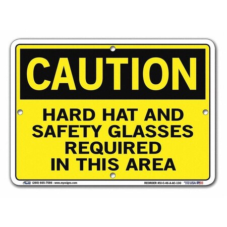 Vestil SI-C-46-A-AC-130 HARD HAT AND SAFETY GLASSES REQUIRED IN THIS AREA Caution Sign, Aluminum Composite, 0.130" Overall Size, 10.5" W x 7.5" H