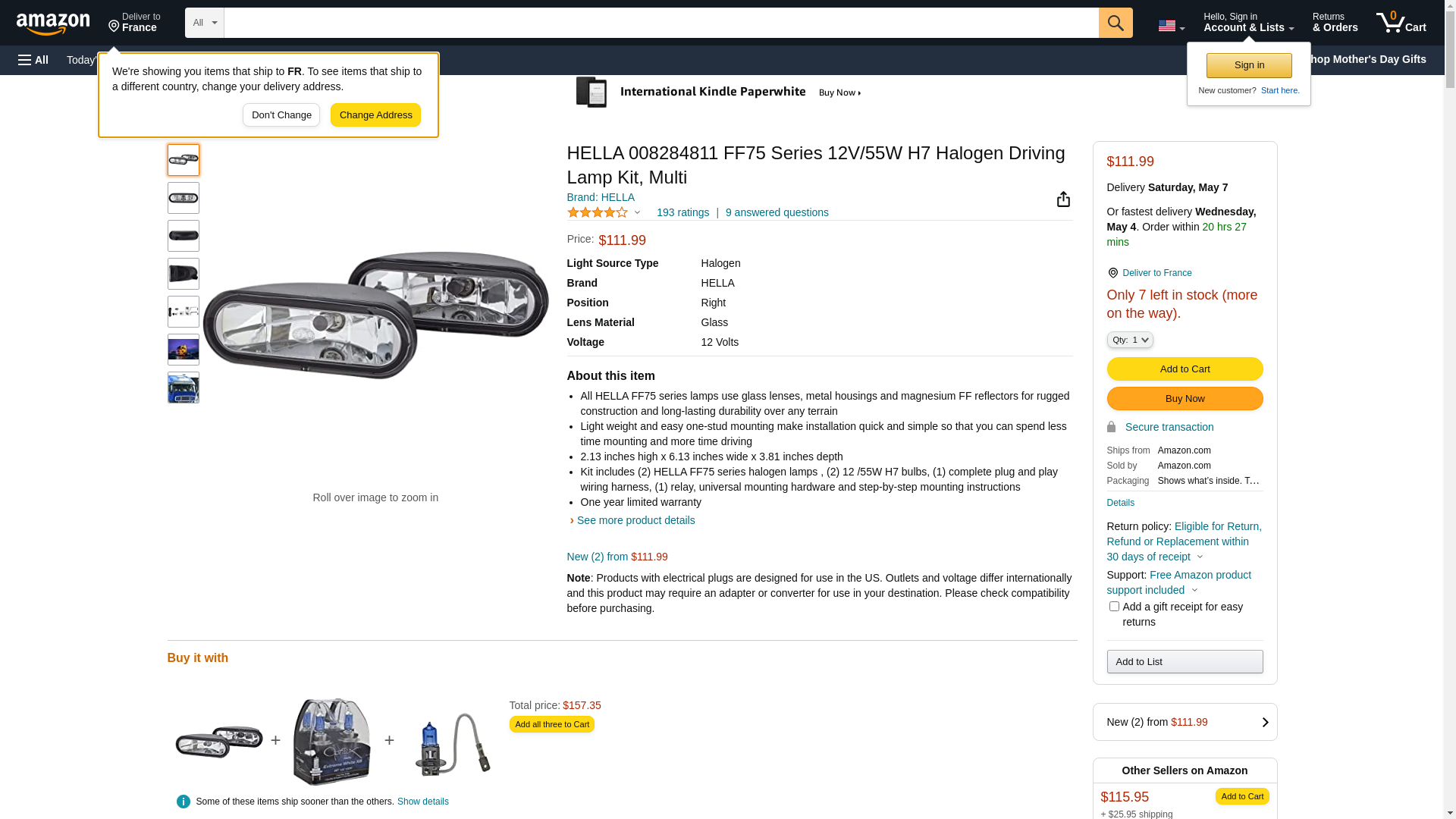 - Kit includes (2) HELLA FF75 series halogen lamps , (2) 12 /55W H7 bulbs, (1) complete plug and play wiring harness, (1) relay, universal mounting hardware and step-by-step mounting instructions