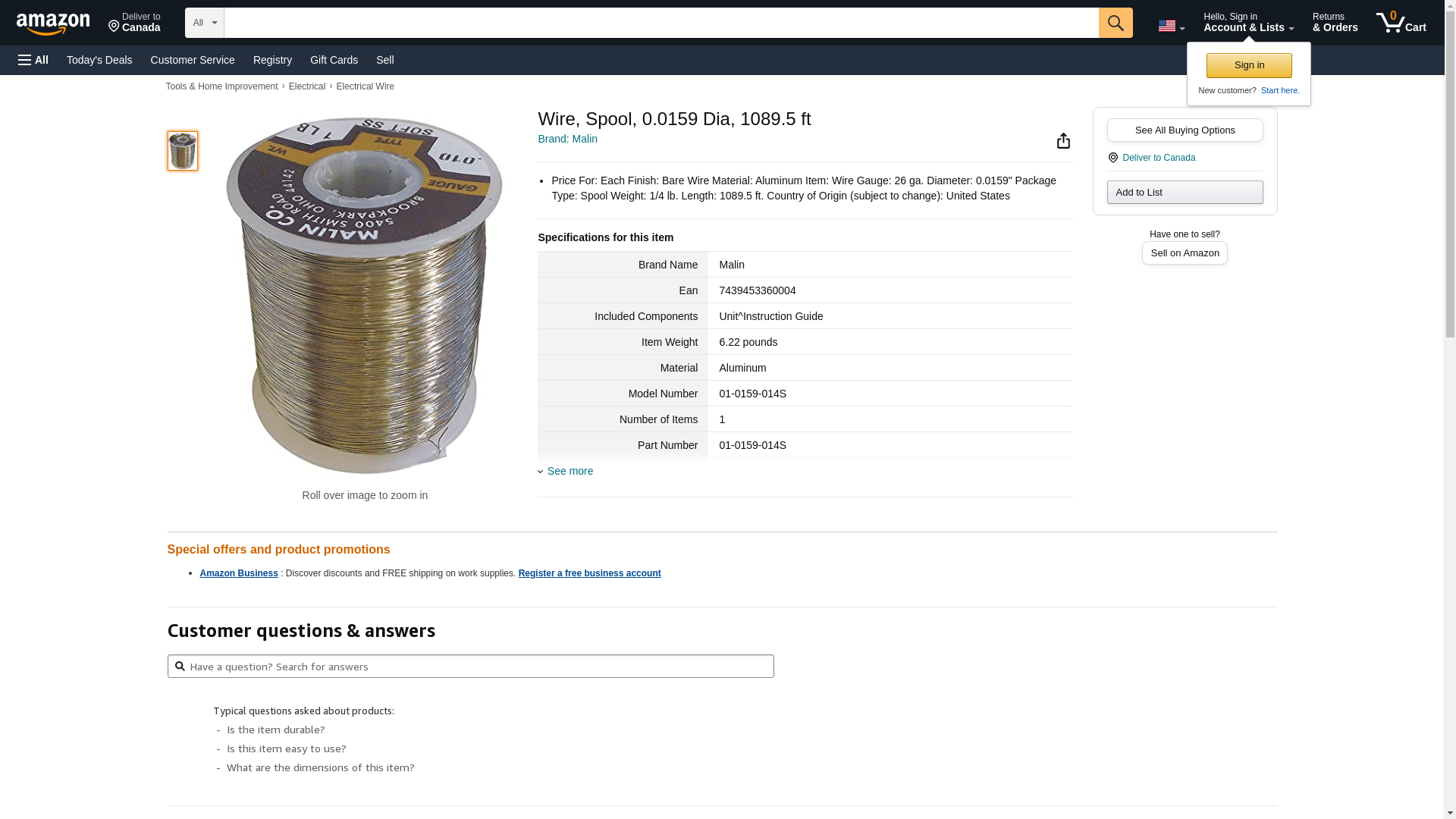 | Feature | Price For: Each Finish: Bare Wire Material: Aluminum Item: Wire Gauge: 26 ga. Diameter: 0.0159" Package Type: Spool Weight: 1/4 lb. Length: 1089.5 ft. Country of Origin (subject to change): United States |