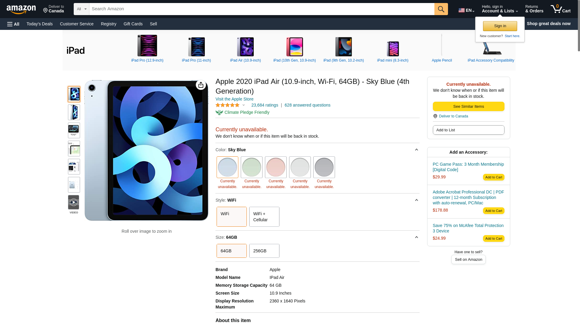 Apple 2020 iPad Air (10.9-inch, Wi-Fi, 64GB) - Sky Blue (4th Generation)