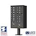 1570-16DBAF Finish: Dark Bronze Pebble Features: -16 mailboxes, 1 outgoing and 2 parcels. -Manufacturer provides 5 year limited warranty. Material: -Steel/Aluminum. Dimensions: -Pedestal Height: 14.375''. -Std. Compartment: 12.875''W x 3.25''H. Overall Height - Top to Bottom: -62". Overall Width - Side to Side: -30.5". Overall Depth - Front to Back: -17.875". Overall Product Weight: -160 lbs.