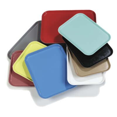 - Rectangular tray for serving and carrying food in restaurant or cafeteria