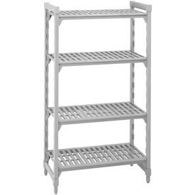 Cambro CPU184872V4480 Camshelving Premium Starter Unit, 4-Tier (4) Vented Polypropylene Shelf Plates, (2) Pre-Assembled Post Kits, (8) Traverses and Molded-In Dovetails, 72" Height, 18" Width, 48" Length, Polypropylene