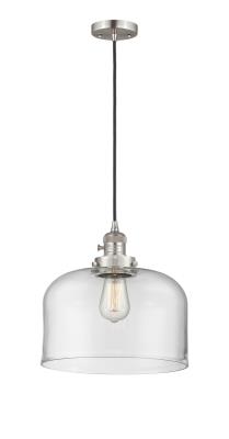 This 1 light Mini Pendant from the Franklin Restoration Bell collection by Innovations Lighting will enhance your home with a perfect mix of form and function. The features include a Brushed Satin Nickel finish applied by experts. Product Features Include: Brand: Innovations Lighting, Collection: Franklin Restoration Bell, SKU: 201CSW-SN-G72-L-LED, UPC: 745684624608, Category: Mini Pendant, Finish: Brushed Satin Nickel, Glass: Clear X-Large Bell, Material: Steel/Cast Brass/Glass, Designer: Bruno Marashlian, Width: 12.00 in., Height: 8.00 in., Max Height: 133.25 in., Diameter: 12.00 in., Backplate/Canopy Width: 4.50 in., Backplate/Canopy Length: 0.00 in., Backplate/Canopy Thickness: 0.75 in., Weight: 4.40 lb., Included Chain/Rods/Cord: 10 Feet Of Black Textured Cord, Switch: On/Off Turn Switch, Warranty: 2 Year Finish, Lifetime Electrical, Bulbs Included: Yes, Bulb Category: LED, Primary Bulb(s): 1 x 3.50 watts Medium Base ST64 Vintage, Color Temperature: 2700K, Color Rendering Index: 82.0000, Total Lumens: 350, Voltage: 120, Safety Rating: UL/ETL Damp, Title 20 Approved