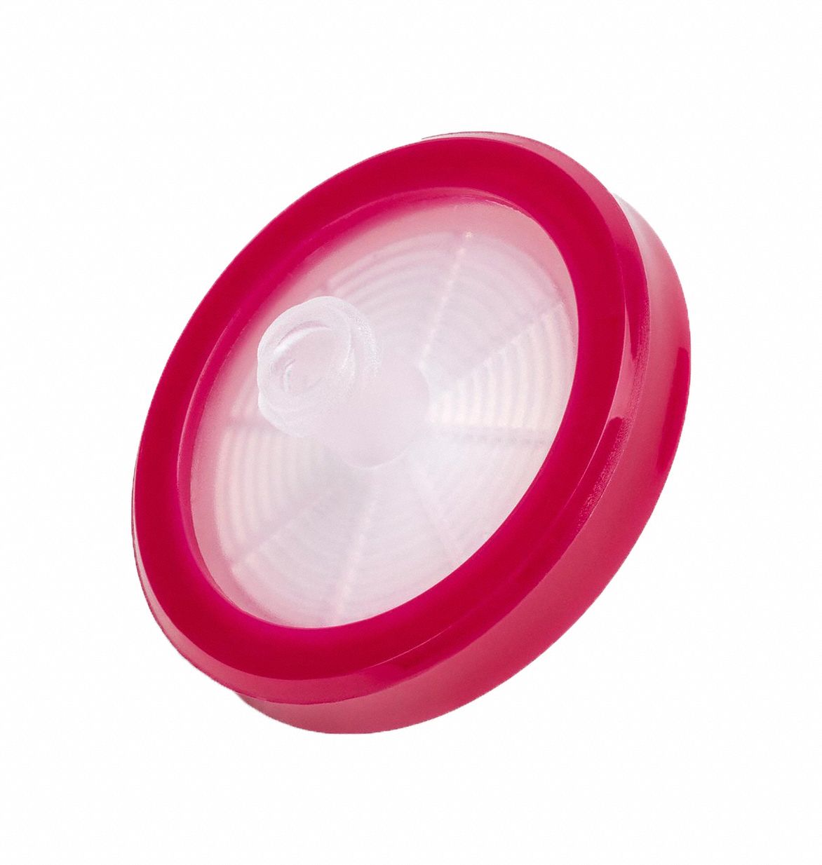 Globe Scientific SF-PVDF-2230-S Syringe Filter, PVDF Hydrophilic Membrane, 0.22µm Porosity, PP Housing, Sterile, Magenta, 30mm Diameter, Pack of 50