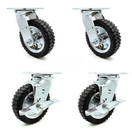 6" Pneumatic Caster Set of 4-2 Swivel with Brakes/2 Swivel - Black Rubber Wheel - 1,200 lbs. Capacity - Service Caster Brand