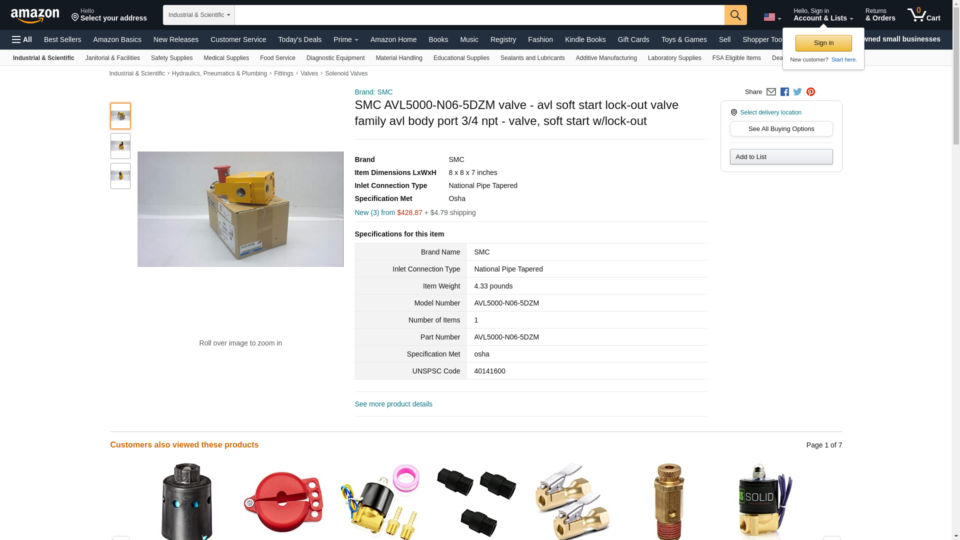 | Airline Hydraulics | SMC AVL5000-N06-5DZM | 1 | 53 | 1 | 1 @ $266.90 |