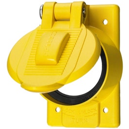 Yellow Valox<sup>&reg;</sup> carbonate. For weatherproofing 50 amp receptacles. Meets the requirements of the most stringent of UL’s three listing categories for weatherproof plates. Stainless steel screws and a neoprene gasket are included for mounting. Made for mounting to FS/FD type weatherproof boxes.