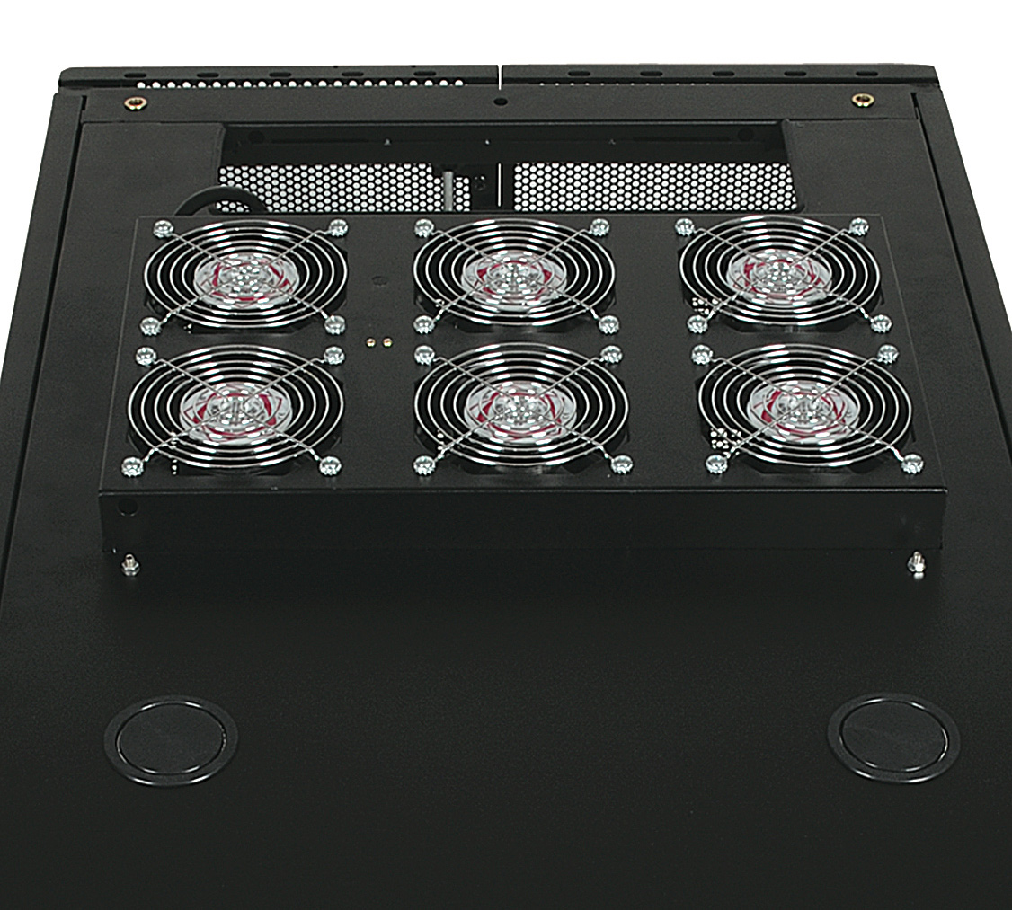 Tripp Lite's SmartRack SRFANROOF is ideal for increasing the ventilation in all rack enclosure server cabinets. The unit features (6) 120V high performance fans mounted in a roof panel, 6-ft. cord with NEMA 5-15P input plug, and includes toolless mounting hardware.COMPATIBLE SMARTRACK ENCLOSURES - SR25UB, SR25UBKD, SR25UBSP1, SR25UBTAA, SR42UB, SR42UBCL, SR42UBEXP, SR42UBG, SR42UBKD, SR42UBSP1, SR42UBTAA, SR48UB, SR48UBCL, SR48UBEXP, SR48UBSP1, SR42UBTAA, and other Tripp Lite SmartRack enclosures that specify the use of this accessory.</p>