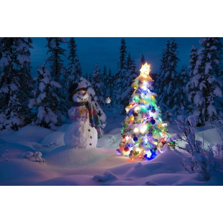 Snowman Stands In A Snowcovered Spruce Forest Next To A Decorated Christmas Tree In Wintertime was reproduced on the finest Canvas which captures all of the vivid colors and details of the original art. This museum quality Canvas Art was faithfully reproduced using ultra-precision print technology and fade-resistant archival inks on artist premium acid-free grade canvas. The overall size is 34 x 22 inches plus an additonal 1.5 inches of extra canvas on all 4 sides to allow for easy stretching and/or framing. This premium rolled Canvas Art is ready for stretcher bars or custom framing. <br /> <br /> <ul> <li>Brand New and Rolled and ready to stretch or frame</li> <li>Canvas Art Title: Snowman Stands In A Snowcovered Spruce Forest Next To A Decorated Christmas Tree In Wintertime</li> <li>Canvas Size: 34.00 x 22.00 inches plus an additional 1.5 inches of extra canvas on all 4 sides to allow for easy stretching and/or framing</li> <li>Licensor: Design Pics</li> <li>Artist: Kevin Smith / Design Pics</li> </ul>