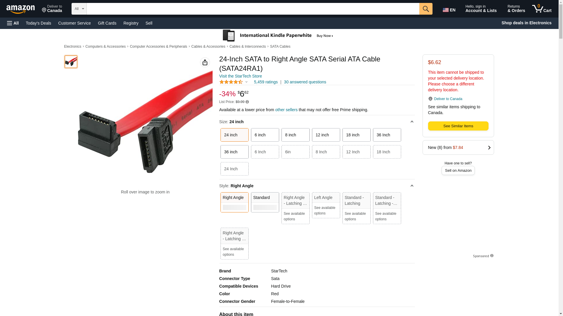 StarTech 24in SATA to Right Angle SATA Serial ATA Cable