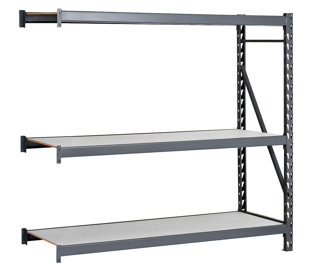 Bulk Storage Rack Width 60 In. Depth 24 In. Height 120 In. Load Capacity 10 800 lb. Number of Shelves 3 Capacity per Shelf 3600 lb. Beam Capacity 3600 lb. Gray Material Steel Decking Material Laminate Finish Powder Coated Adjustable Increments 3 In. Includes (1) Upright Frame and (3) Shelf Levels